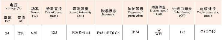 產(chǎn)品名稱:BDL-125防爆電鈴