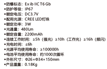 防爆手電筒內(nèi)配置有過放、過充及短路保護(hù)電路,可靠的保護(hù)電池,延長(zhǎng)手電筒使用壽命;智能型充電器具有過充、短路保護(hù)及充電顯示裝置。