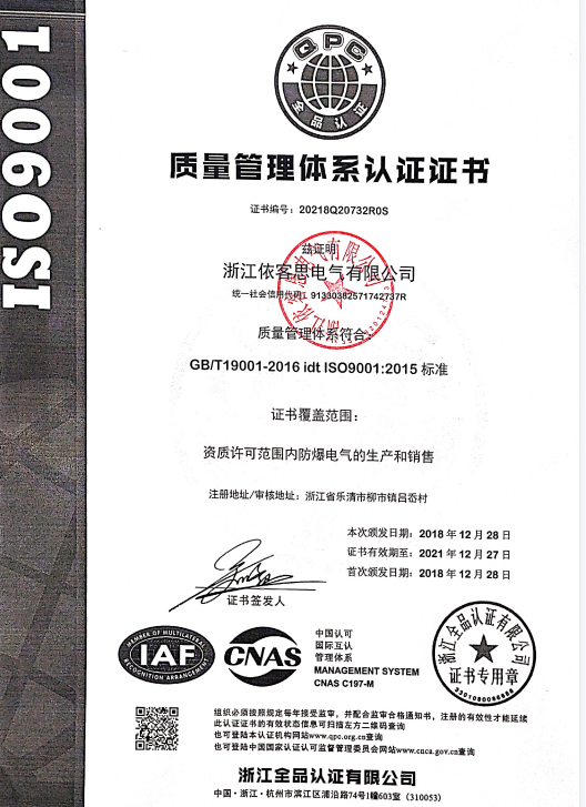 產(chǎn)品認(rèn)證:生產(chǎn)廠家制造的防爆電氣產(chǎn)品是否合格,是否滿足危險場所規(guī)定要求,必須通過國家及國際指定檢測單位進(jìn)行產(chǎn)品的爆炸試驗和相關(guān)防爆性能測試。但是檢測中心只是對送檢的樣品是否合格給予判定。用戶選擇安全的產(chǎn)品首先檢查防爆合格證,如何判定防爆合格證是否屬于國家指定檢測單位出具的報告,可以到檢測中心的官網(wǎng)上查詢防爆證號是否屬實。其次由制造單位提供產(chǎn)品樣品,使用單位委托第三方檢測。國際認(rèn)證的產(chǎn)品不只是針對產(chǎn)品檢測,更重要的是檢查制造單位的生產(chǎn)設(shè)備加工能力以及體系運行保證產(chǎn)品質(zhì)量符合檢測規(guī)定。確保使用者放心,省心。對沒有加工能力的企業(yè)不予防爆合格證的發(fā)放。