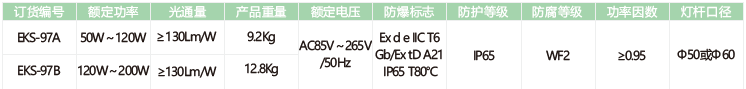 EKS97免維護(hù)路燈技術(shù)參數(shù):