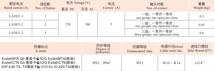 - 產(chǎn)品名稱(chēng):LA5821防爆防腐控制按鈕