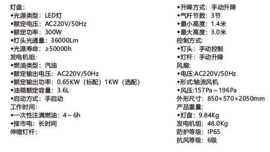 如本產(chǎn)品的標(biāo)準(zhǔn)配置不能滿足客戶的工作需求,我司可在燈頭功率、伸縮氣缸的升起高度及發(fā)電機(jī)的配備上按客戶要求做出調(diào)整,以滿足客戶的個(gè)性化需求